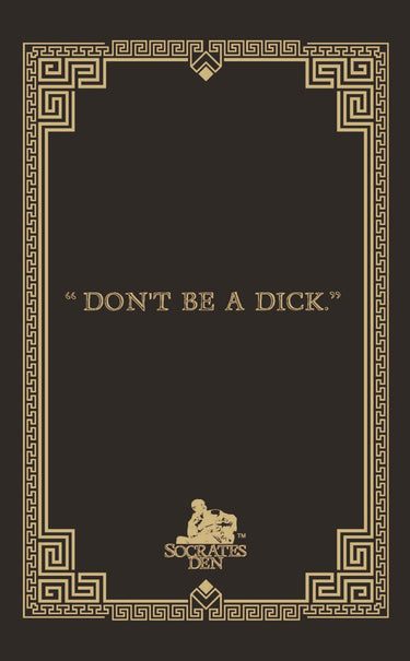 Don’t be a dick. It’s simple, yet some people just don’t get it. If you’re reading this and thinking, ‘What does that even mean?’ — well, maybe you’re the one who needs to pay attention. Being a dick goes beyond just being rude — it’s about actions that hurt others, whether it’s stealing, lying, or emotionally or physically harming people. It’s those little (or not so little) moments when you put your own ego, convenience, or desires above the well-being of others. Whether you’re cutting in line, gossiping behind someone’s back, or leaving someone in the dust to get ahead — guess what? You’re being a dick. This isn’t about being perfect; it’s about being mindful. It's about thinking twice before you act and choosing kindness over cruelty. If you’ve ever intentionally hurt someone, spread lies, or made someone feel small just for your own amusement or gain, then it's time to ask yourself why you feel the need to behave that way. Life’s too short for unnecessary drama, and the world definitely doesn’t need any more dicks. So, let’s make a choice: be better, be kinder, and most importantly, don’t be a dick. The world will thank you for it, crafted as a timeless heirloom.